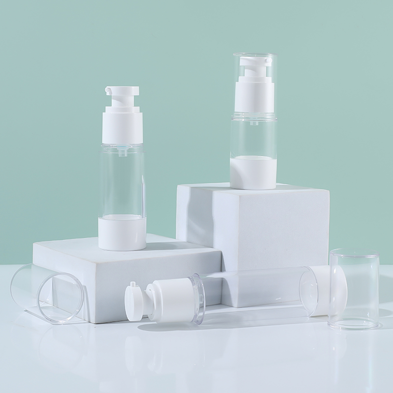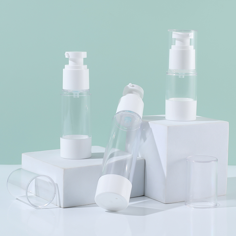 20ML 30ML 50ML AS PP Con dấu trong suốt Chai bơm mỹ phẩm không có không khí Chai bơm chân không HS-008B đã trở thành lựa chọn phổ biến cho bao bì mỹ phẩm từ trung cấp đến cao cấp do an toàn vật liệu, ổn định chức năng và đặc tính bảo vệ môi trường.