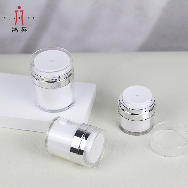HS-016C Hộp đựng mỹ phẩm acrylic không có không khí 15g 30g 50g 100g Lọ kem mỹ phẩm nhựa trắng đen đã trở thành một trong những giải pháp đóng gói ưa thích của các thương hiệu chăm sóc da từ trung cấp đến cao cấp với khả năng niêm phong tuyệt vời, kiểm soát liều lượng chính xác và khả năng bảo quản lâu dài. Cho dù đó là tinh chất có hoạt tính cao, kem dưỡng ẩm cao hay sản phẩm chăm sóc da chức năng có giá trị gia tăng cao, chai chân không đều có thể làm giảm quá trình oxy hóa các thành phần một cách hiệu quả và tránh ô nhiễm thứ cấp, đồng thời nâng cao ý thức công nghệ và tính dễ sử dụng của sản phẩm.